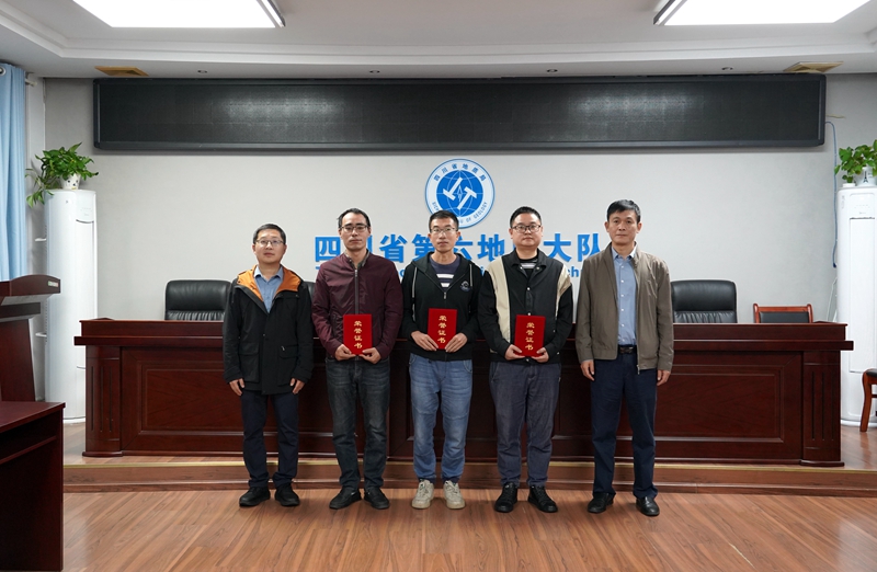 舒适代表大石镇党委、政府,对六大队在白云寺滑坡应急救灾中提供的专业技术支撑表示衷心感谢,并向六大队赠送“火眼金睛勘地脉,定海神针稳山川”锦旗。随后,镇领导为六大队张浪静、江炬、李思豪三位同志颁发荣誉证书,表彰他们“以精密仪器为眼、以专业学识为盾”,为政府科学决策和应急救灾作出的突出贡献。