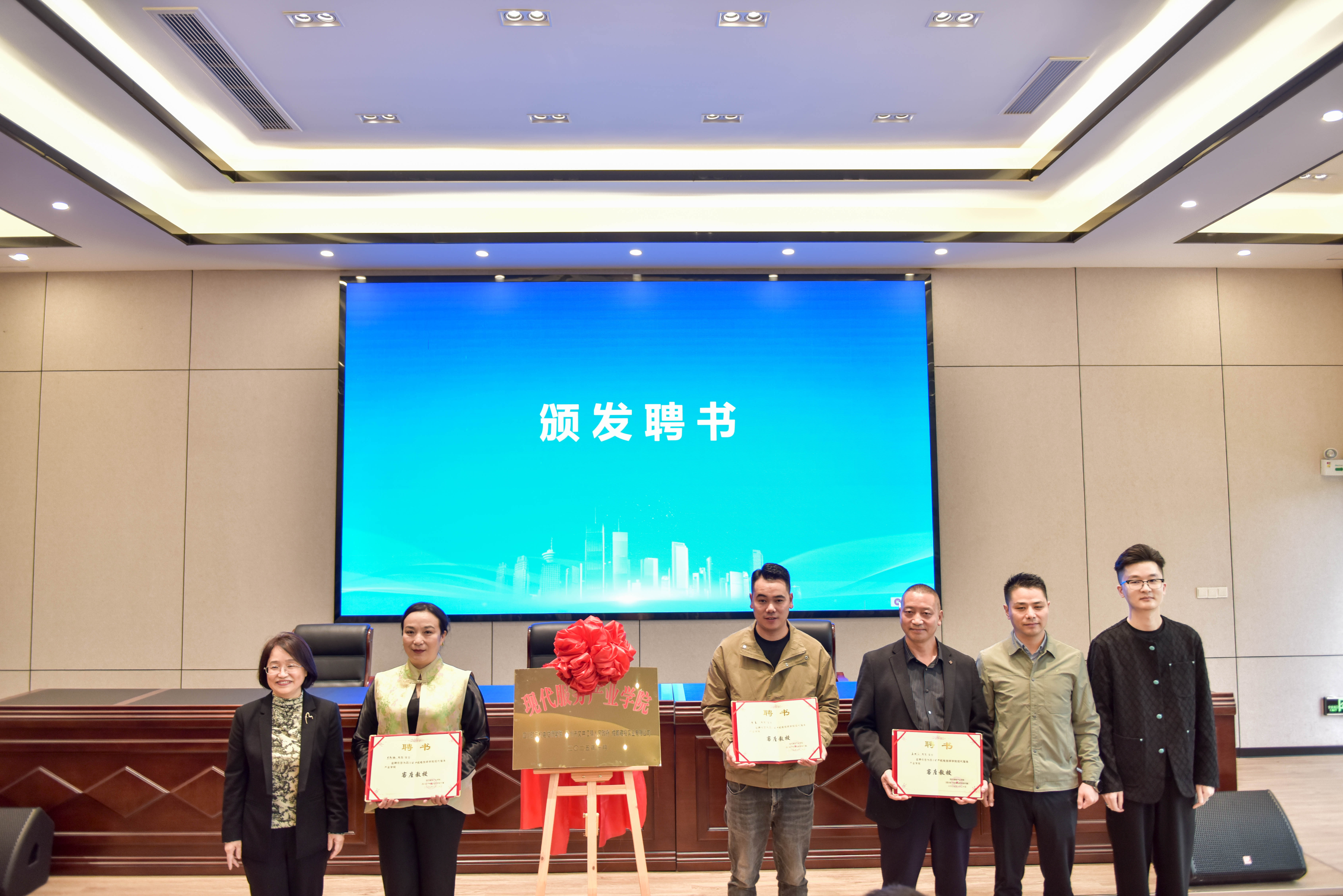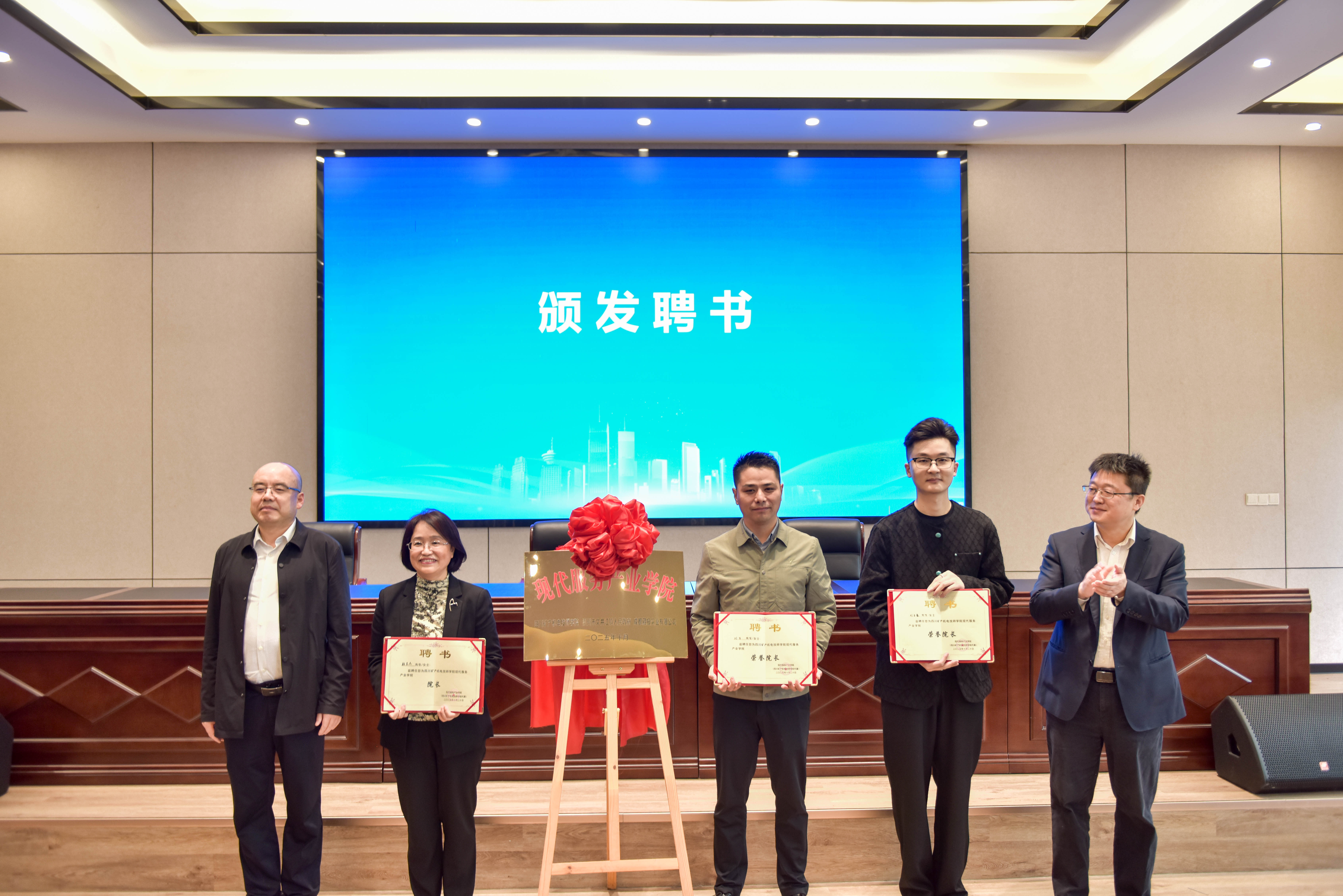 刘万,曹志坚,刘远盟、郑常翔作为三方代表共同为“现代服务产业学院”揭牌,标志着该学院正式成立。仪式现场为产业学院荣誉院长、院长及客座教授颁发了聘书,为冠名班进行授牌。文井江镇人民政府还向技师学院赠送锦旗,表达对合作前景的坚定信心与美好祝愿。