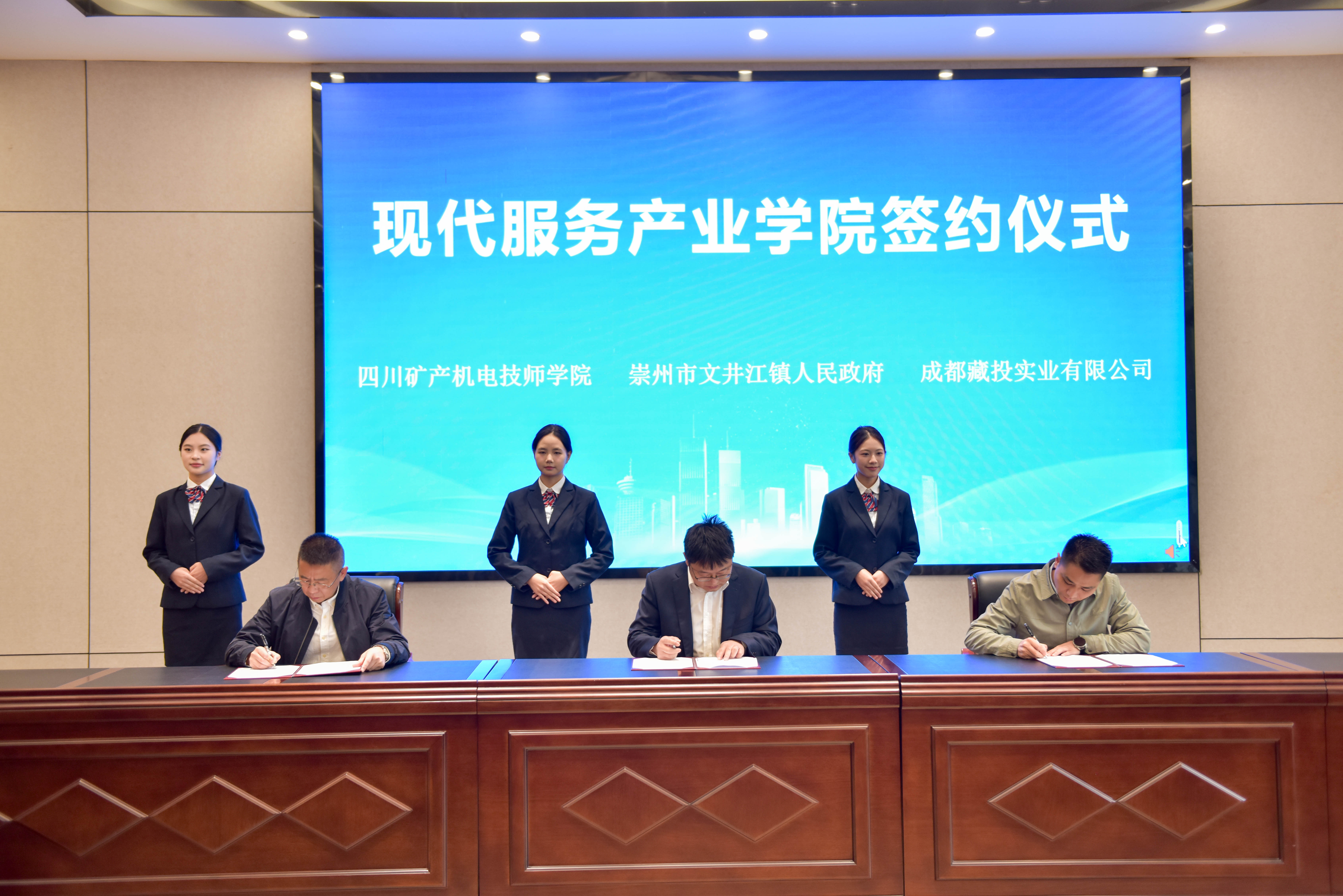 10月20日上午 ,在第二学术报告厅,技师学院与崇州市文井江镇人民政府、成都藏投实业有限公司校、政、企三方举行共建“现代服务产业学院”签约暨揭牌仪式。三方代表齐聚一堂,共同见证这一推动产教融合、服务地方经济发展的重要时刻。