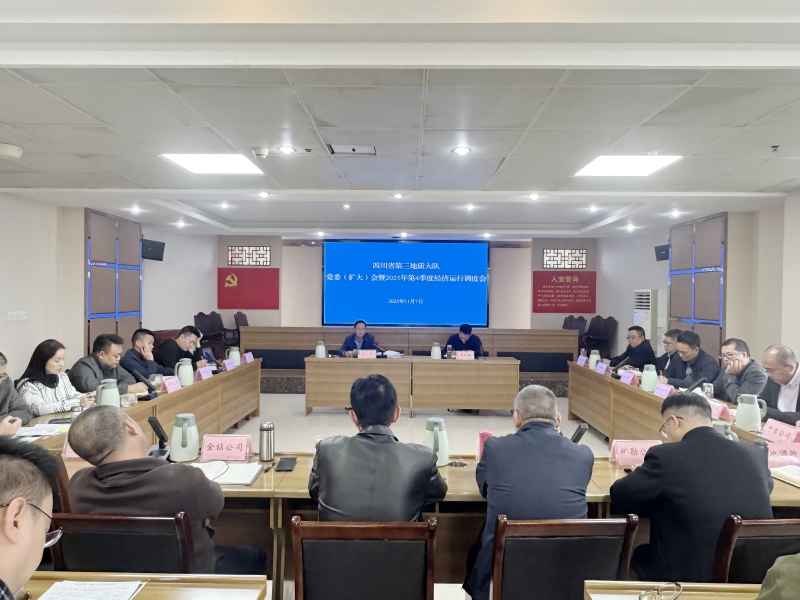 11月7日,四川省第三地质大队召开2025年党委(扩大)会暨第4季度经济运行调度会,深入学习贯彻党的二十届四中全会精神,总结前三季度工作成效,部署四季度收官及来年工作。队领导、科室及实体主要负责人、支部书记45人参加会议。队党委书记、队长肖华主持会议。