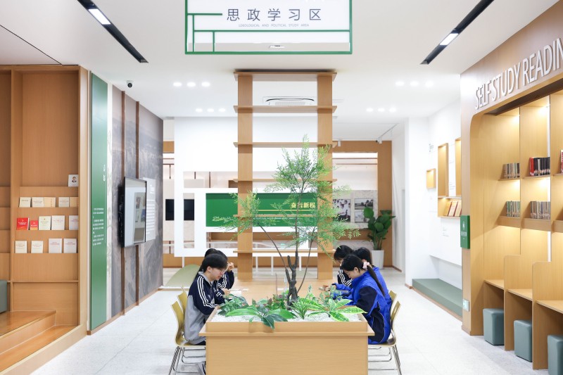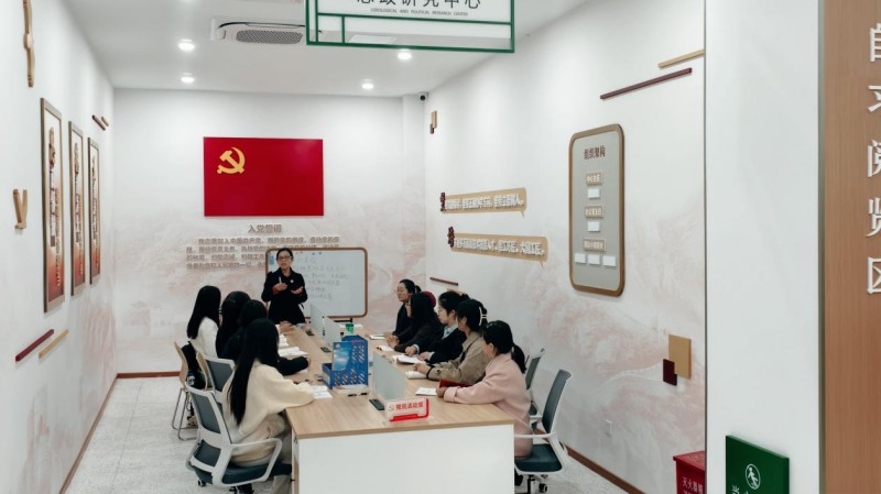 找教研资料不用东奔西跑,讨论问题有专属场地,通过科学划分功能区域、构建多区联动机制,告别思政学习资源分散、场地零散的困扰,将办公区、学习讨论区与思政学习区有机联动,依托开放性图书馆全新打造“一站式”思政学习服务场域。在这里,教师们可以围坐研讨教学方案,学生们能随时查阅书籍,思想碰撞随时发生。“课余时间来学习区看看教学视频,32个《中国特色社会主义》示范课程片段,每一个都很对胃口,不知不觉就学到了知识!”一名学生笑着说,这个专属空间让思政学习变得轻松又高效。