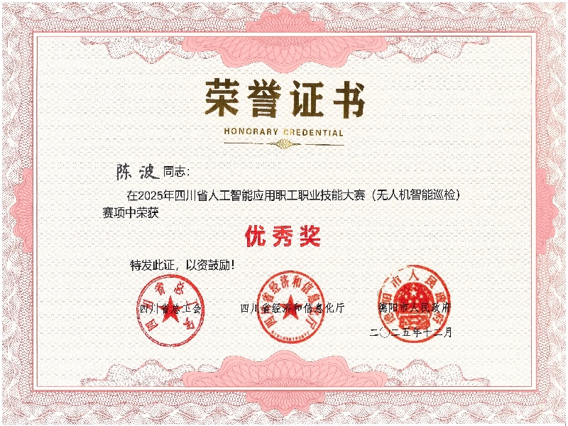 近日,2025年四川省人工智能应用职工职业技能大赛暨全国邀请赛在德阳市圆满落幕。代表省地质工会参赛的十一大队选手,在“无人机智能巡检”赛项中表现突出,荣获优秀奖及铜牌。