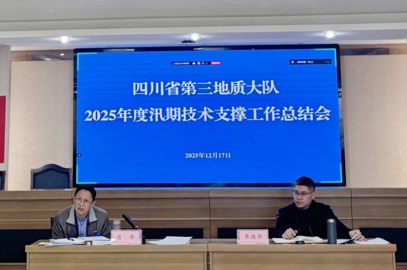 12月17日,四川省第三地质大队召开2025年度汛期技术支撑工作总结会,深入分析当前形势与挑战,系统总结本年度汛期技术支撑工作成效与经验,安排部署2026年度汛期驻守及地质灾害防治工作。会议以线上线下结合的形式召开。队党委书记、队长肖华,副队长尹建华、邵兴隆、王成锋,相关实体(公司)主要负责人,各驻守技术支撑小组成员40余人参加会议。会议由副队长李德华主持。