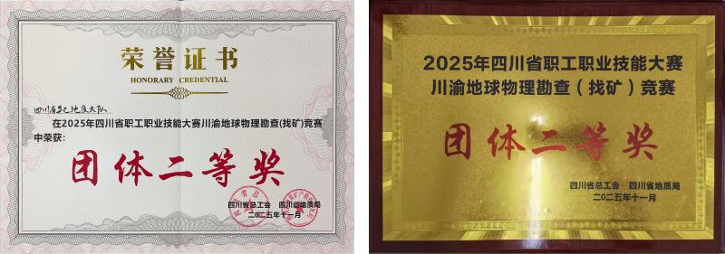在2025年四川省职工职业技能大赛川渝地球物理勘查(找矿)竞赛在德阳收官,由七大队邓波、邱杰、曾宥元3名选手组成的代表队从12支参赛队伍中脱颖而出,获得团体二等奖。