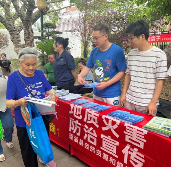 双源公司联合蓬溪县自然资源和规划局,在蓬溪县红星桥和奎阁公园设立宣传站点,并走进蓬溪县明月中学和天福中学开展宣讲活动,现场发放200余份科普手册、400余份宣传折页,还通过现场案例解析用通俗易懂的方式向超500名群众及学生普及地灾防范知识,让公众在轻松愉快的氛围中学习到实用的地质知识。