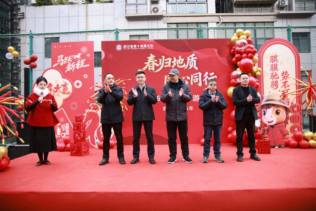 岁序更替,华章日新;瑞气盈门,欢聚一堂。为喜迎2026年新春佳节,丰富干部职工精神文化生活,凝聚团队向心力,2月4日,十大队在队部基地篮球场举办“春归地质·同心同行”主题迎新春游园会。队党委书记、队长苏画,党委副书记、工会主席杨鹏涛,党委委员、纪委书记朱在熹,党委委员、副队长刘增达、陈永东来到活动现场。