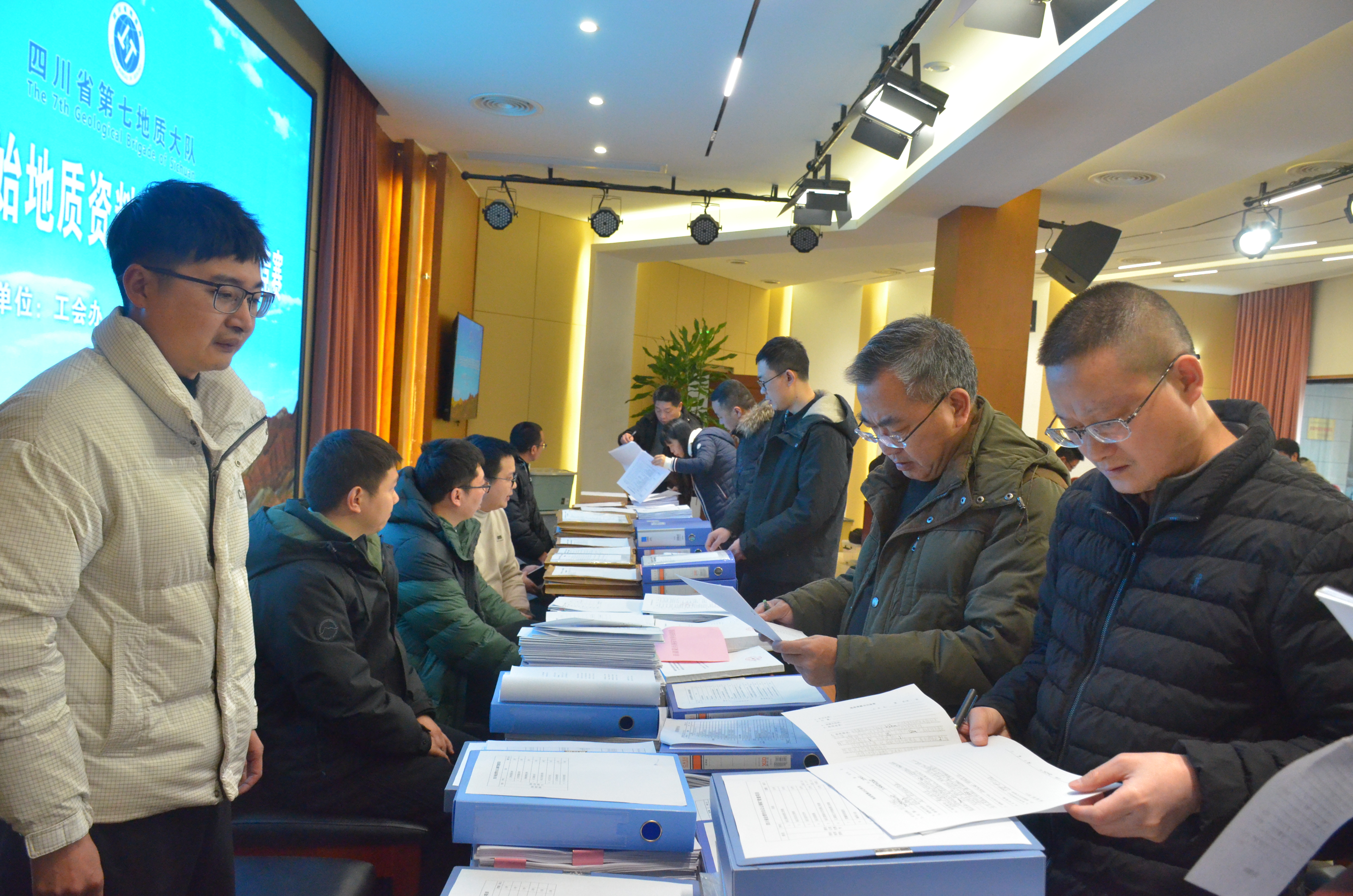 近日,由队工会办、技术科、安全科联合举办的2026年度原始资料展评暨项目汇报竞赛在学术交流厅举行,来自队属实体的19个项目同台竞技。最终,由乐勘资源选送的雷波县马颈子东磷矿普查获得一等奖。