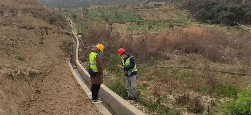606大队技术人员在汉源县富泉镇中海村六组滑坡治理工程现场复核