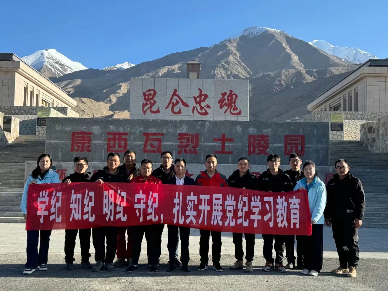 调研组及项目组职工共同到康西瓦烈士陵园开展了党纪学习教育主题党日活动,唐书钊强调在地质勘查工作中要弘扬喀喇昆仑精神,做到缺氧不缺精神、海拔高斗志更高,积极践行“三光荣、四特别”精神,为国家找大矿,找好矿。