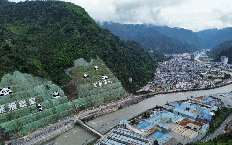 该项目坚持“治理+绿化+文旅”的模式,通过对裸露岩土实施“植被恢复+花卉种植”,在恢复边坡生态功能的同时有效提升安全保障水平和生态美化效果。在治理达标基础上,精心打造以熊猫造型标识、艺术字体、灯光装置等为元素的景观,该区域已成为游客热门打卡地,并发展为展示宝兴文旅形象的新载体,成为宝兴县地质灾害治理工作示范性工程。