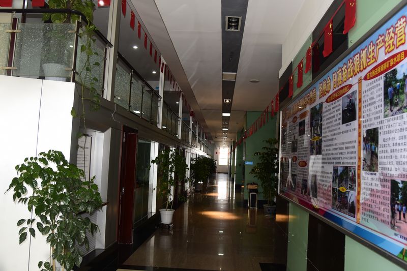 用国旗装点一新的机关办公楼走廊