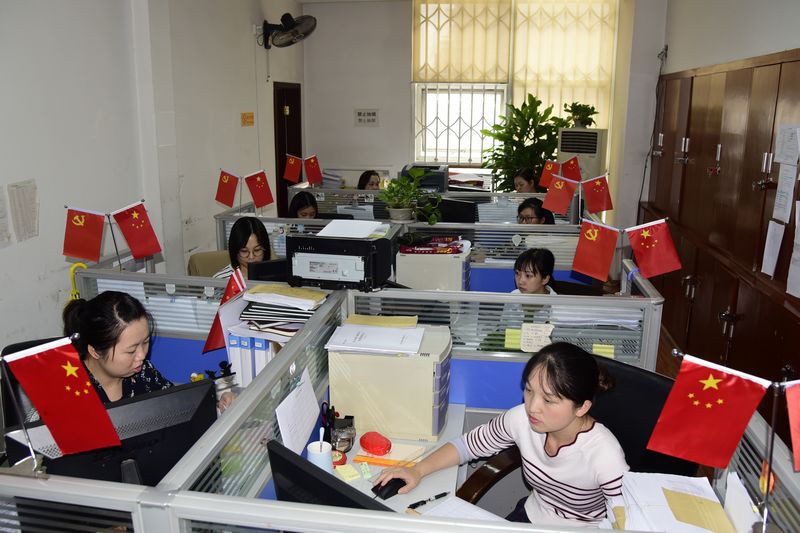五星红旗装点下的办公室