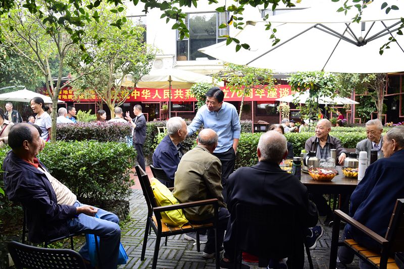 在同一天举行的离退休人员“庆祝中华人民共和国成立70周年座谈会”上,王明典组织广大离退休人员畅谈新中国成立历史,畅谈中国共产党领导的改革开放以来,特别是党的十八大以来祖国发生的巨大变化,畅谈单位的发展变化……进一步激发了离退休人员的爱国爱党情怀,增强了单位的凝聚力。在愉悦喜庆的气氛中,离退休职工共话祖国从站起来、富起来到强起来的伟大成就,喜迎国庆,并提前欢度重阳节。与此同时,成都片区退休支部也组织了退休职工到大邑县斜源镇康养基地提前欢度重阳佳节,老同志们在汽车上便引吭高歌齐唱红歌,再忆峥嵘岁月,表达爱国深情。游玩活动中,大家轻松愉悦,喜迎国庆,欢度重阳。