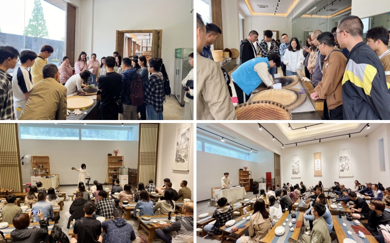 随后,专业老师向大家展示了制茶工艺,包括杀青、揉捻、干燥等工序。大家饶有兴致地观看并亲自上阵,目睹从“茶叶”到“茗茶”的神奇过程。