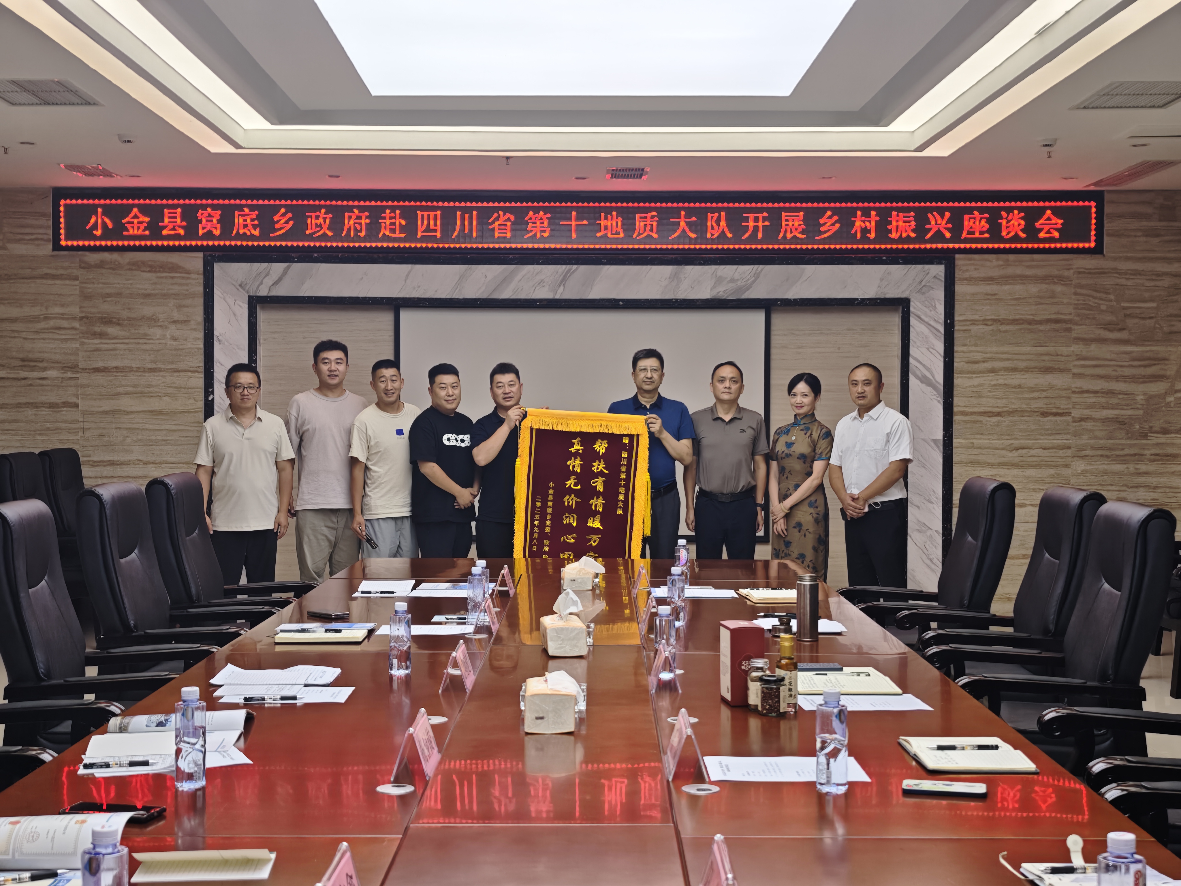 苏画对江明健一行的到来表示热烈欢迎,向他们介绍了十大队的发展历程、队伍结构和经营规模,以及地质找矿、地灾防治和生态文明建设等主责主业的发展情况。他表示,十大队秉承以地质技术服务产业发展的理念,可在地质找矿、土地质量调查、土壤污染治理等多方面为窝底乡提供技术支撑服务。他希望以此次交流座谈为契机,进一步加强与小金县的合作,更好地服务地方经济发展,助力乡村振兴。他还对窝底乡党委、政府对十大队驻村队员的关心关爱和悉心培养表示感谢。