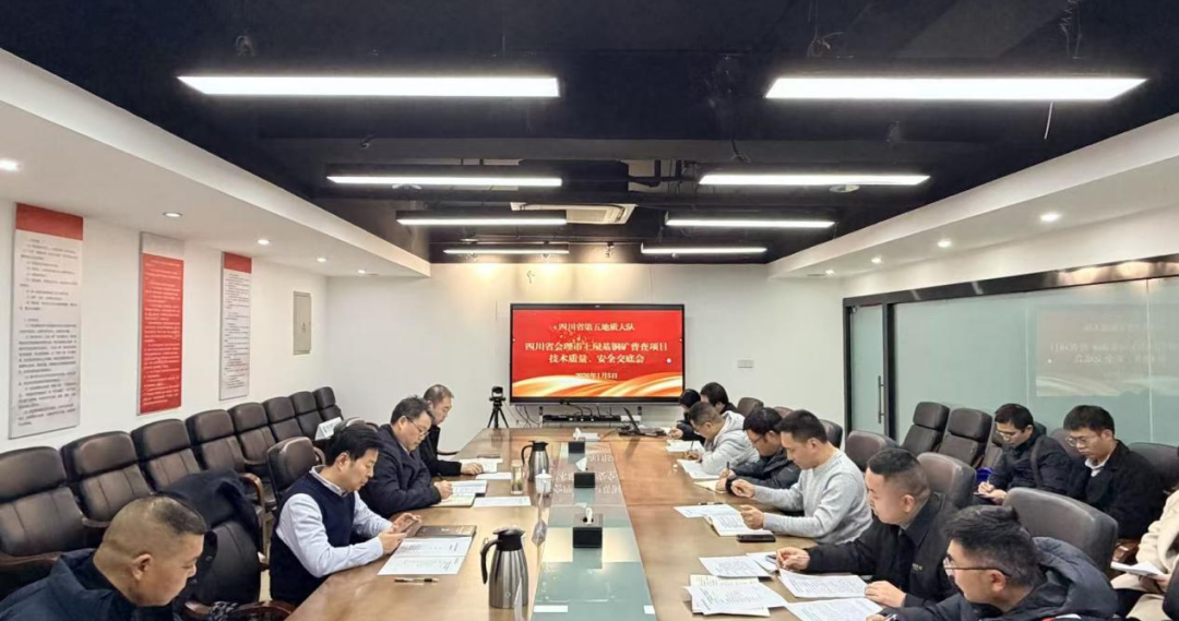 1月5日,五大队召开四川省会理市上屋基铜矿普查项目技术质量与安全交底会。五大队队长、党委副书记王晓辉,党委委员、副队长夏德伟到会指导工作。