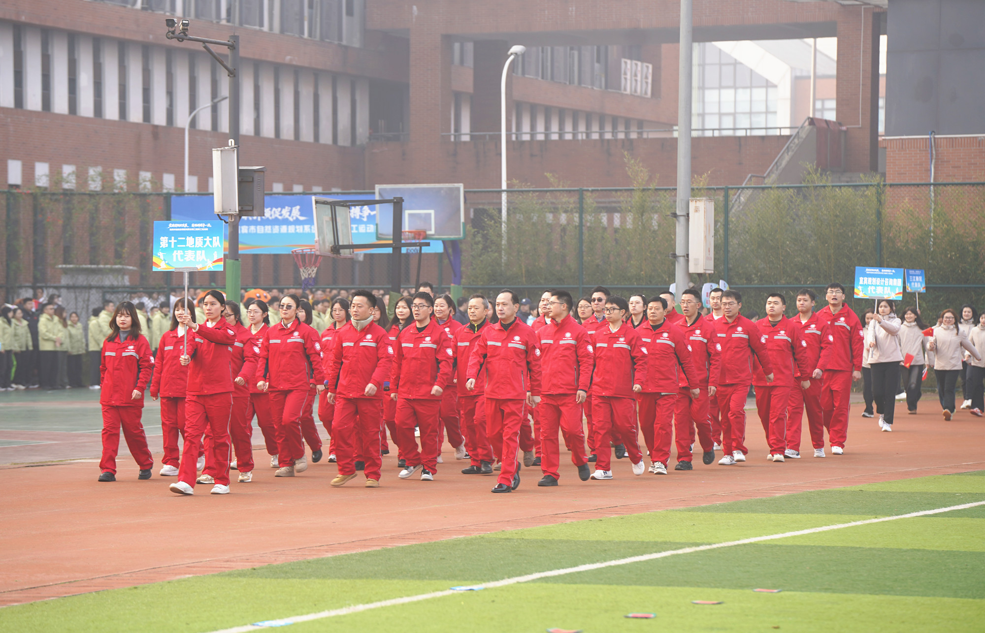 12月28日,由宜宾市自然资源和规划局组办的全市自然资源规划系统第三届职工运动会拉开帷幕。宜宾市自然资源和规划局党委书记、局长张锡恒出席并宣布运动会开幕,翠屏区区长李刚致辞。十二大队队长陈松、党委书记王开忠受邀参加开幕式。