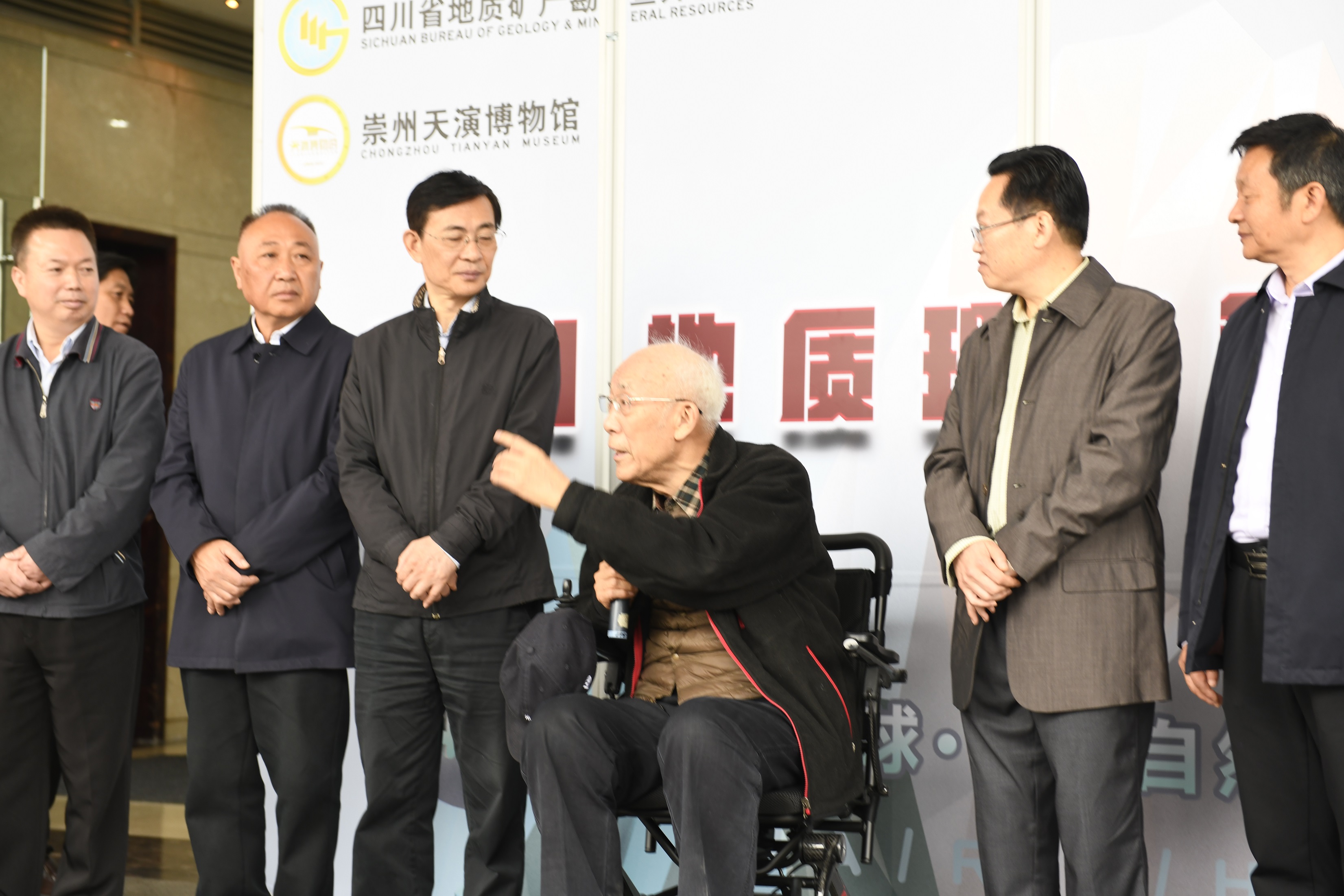 90高龄的中国科学院院士刘宝珺坐着轮椅来到现场。刘老说,今天他非常高兴,非常激动,这个活动非常重要。地质事业是一个伟大的事业,地质科普工作也是一个伟大的事业。我一辈子都有一个期待,四川省能有一个地学博物馆,能够说明地球演化历史的博物馆。今天是一个新起点,期待四川地质科普再上新台阶。