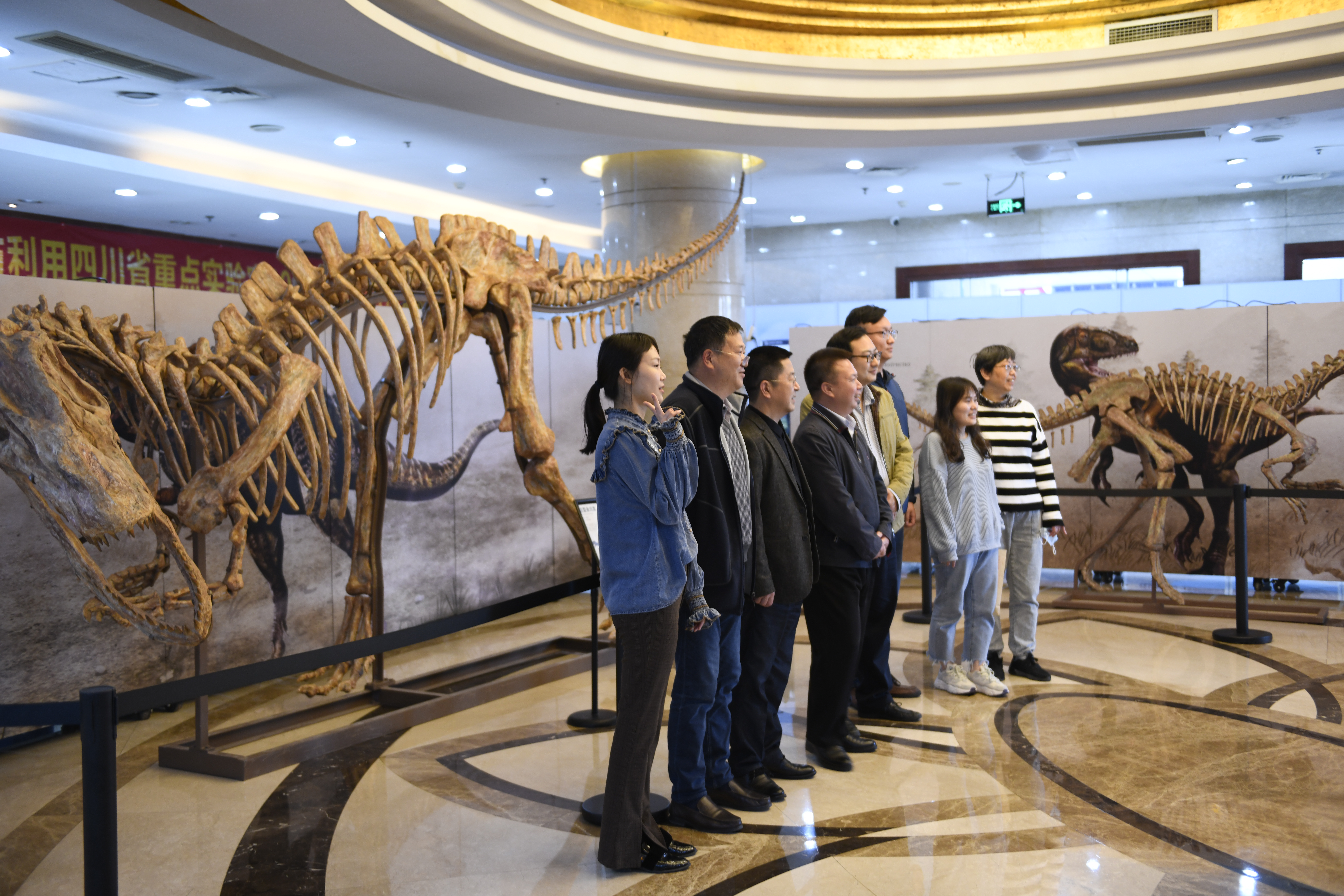 亮点多。平时难得一见的4只大小不一的恐龙化石来到了现场,尤其是位于展厅中心那只10米长2米宽3米高的巨型永川大恐龙化石,最是吸引观众眼球,成为前来参观群众的首选打卡之地。还有巴氏大熊猫化石、30余件各类地质矿物标本也摆在了现场。如果说化石标本抓的是观众眼球,那么,由地质专家担任解说员,把每件标本背后的地球故事娓娓道来,让每一件标本“活”起来,观众们直呼“过瘾”。